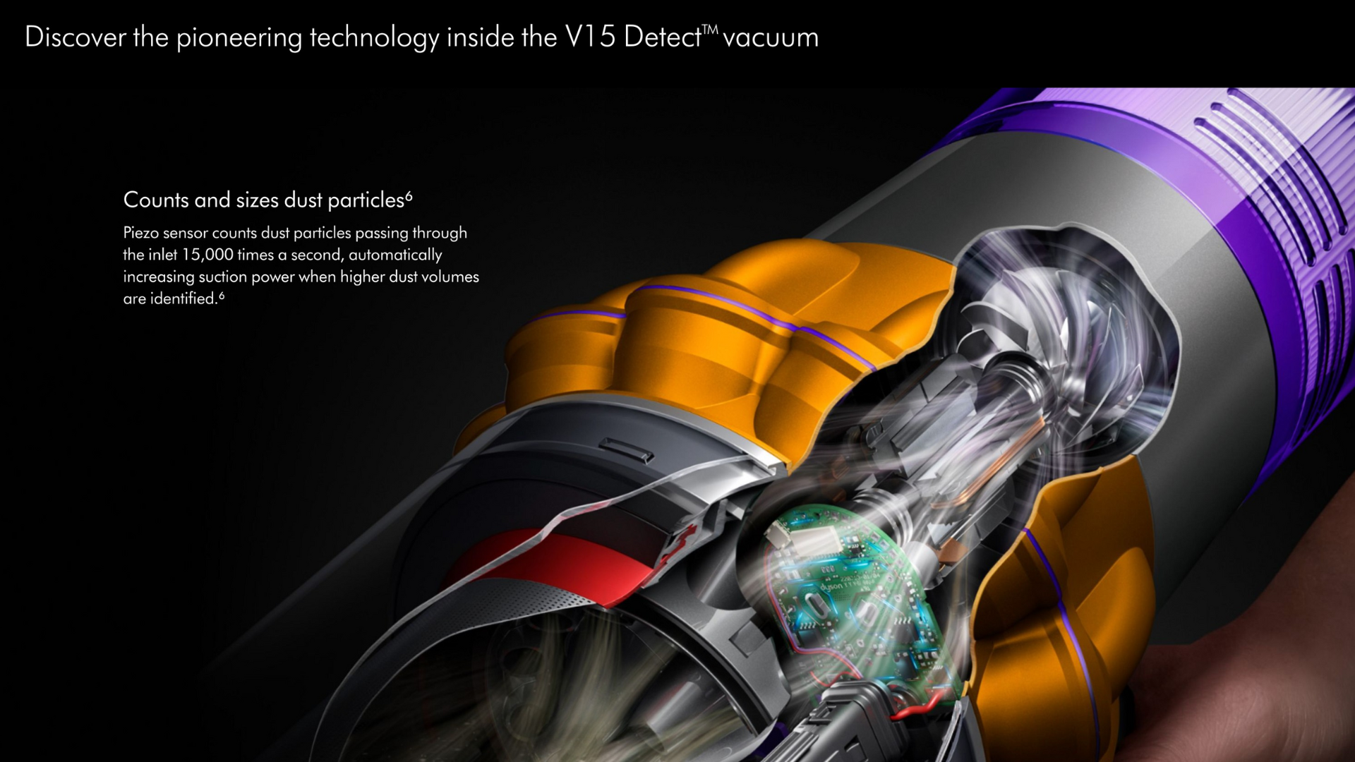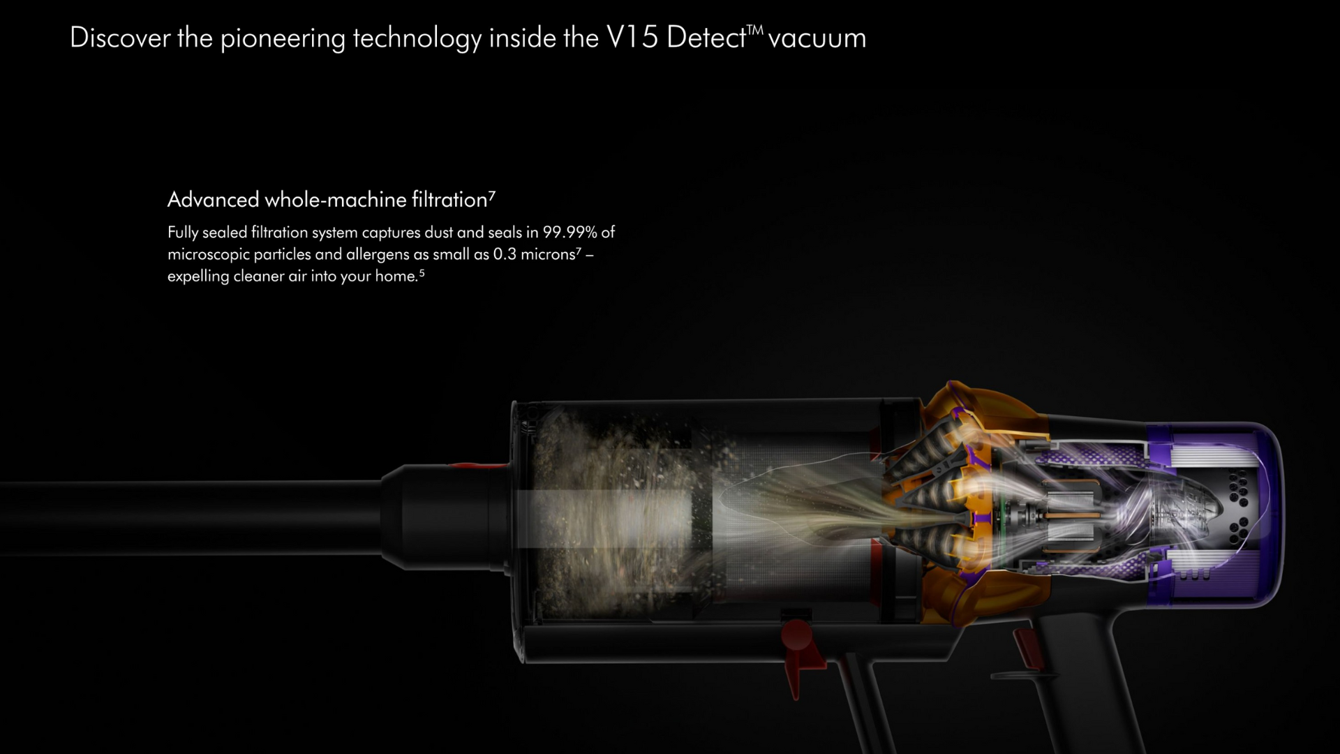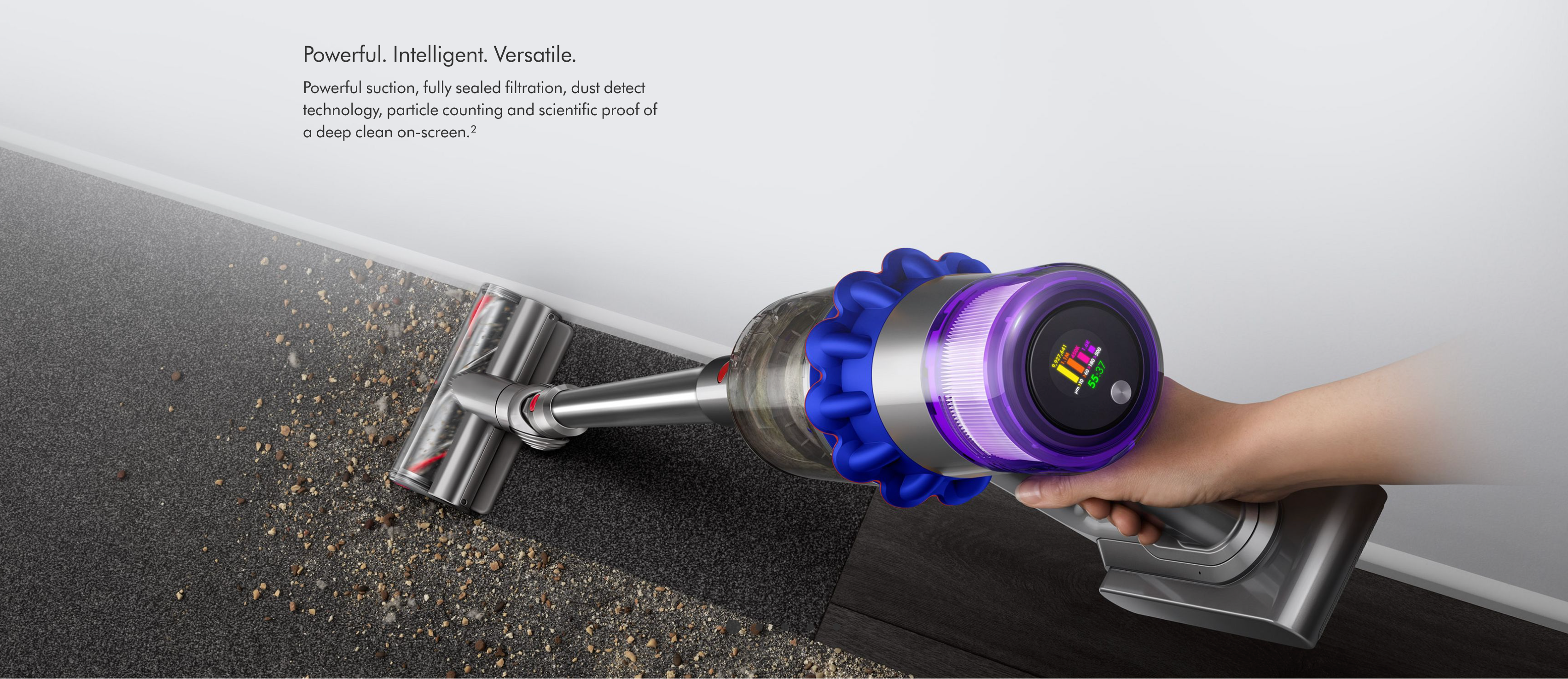 The V15 combines cutting-edge suction power with intelligent dust detection for a deeper, more efficient clean.