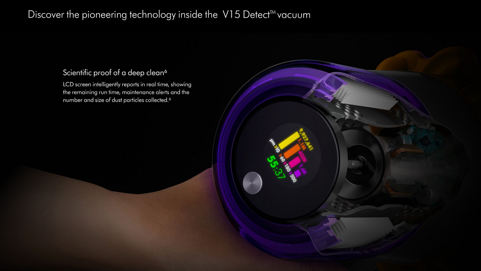Smart Sensor Technology: The dust detection sensor counts particles up to 15,000 times per second and automatically adjusts suction for the perfect balance between power and battery life.