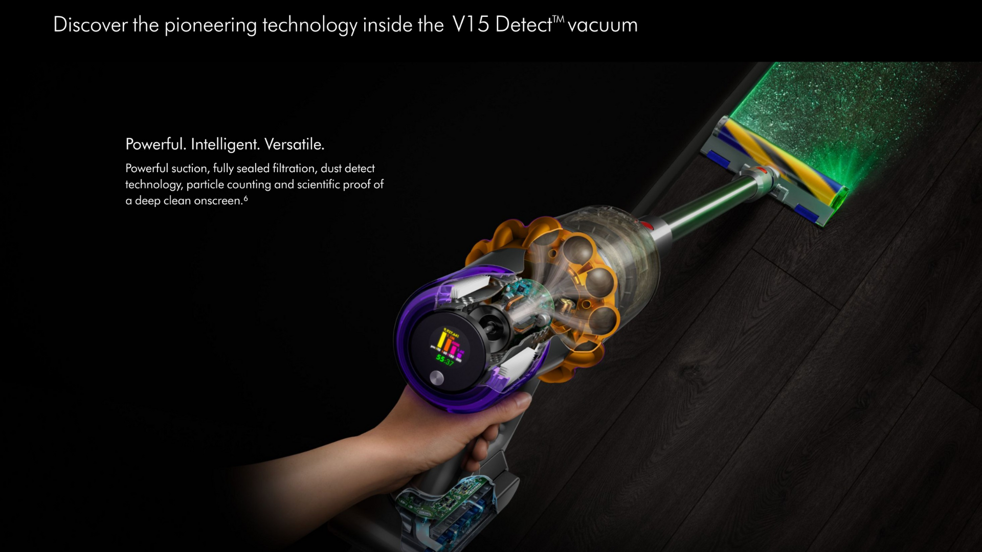The V15 Detect Absolute redefines home cleaning — combining intelligent sensing, high-performance power, and advanced filtration in one sleek, cordless vacuum.